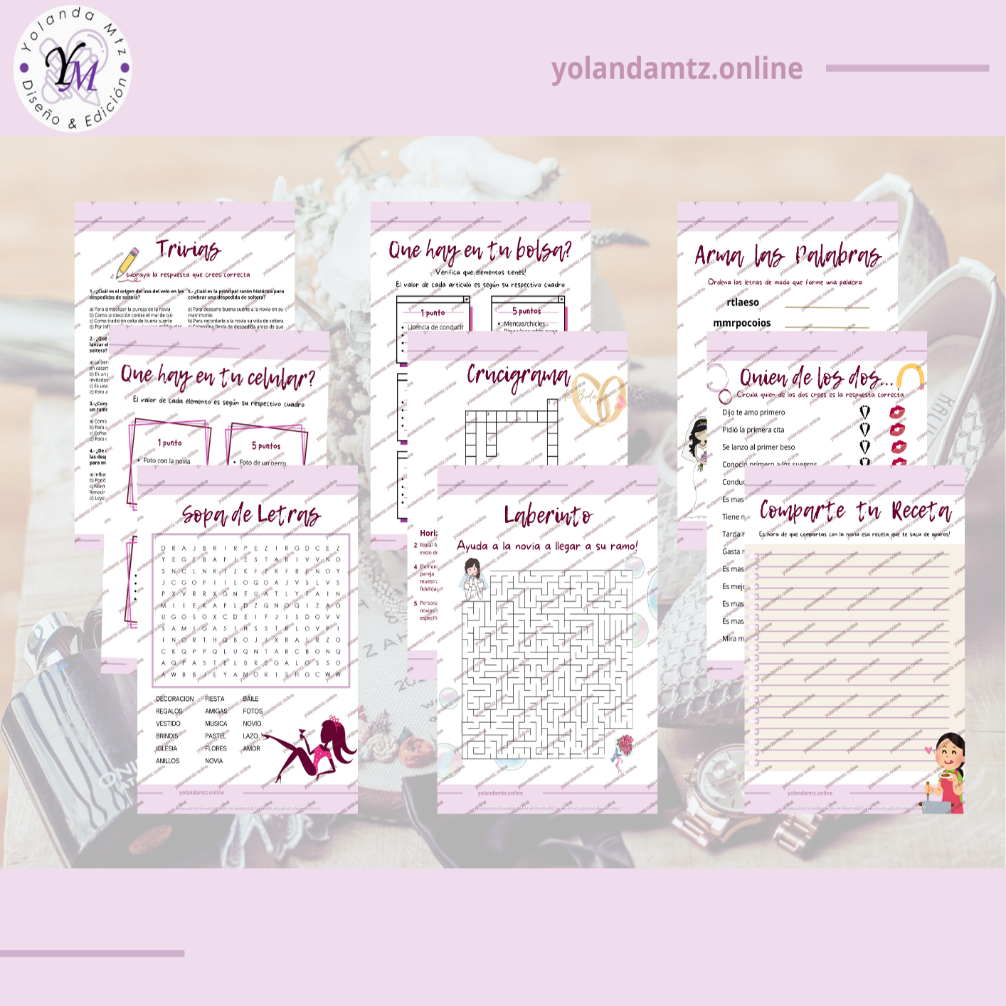 Aumenta la diversión y convivencia de tu fiesta con estos increíbles juegos descargables con temática de despedida de soltera, solo compra, imprime y disfruta!